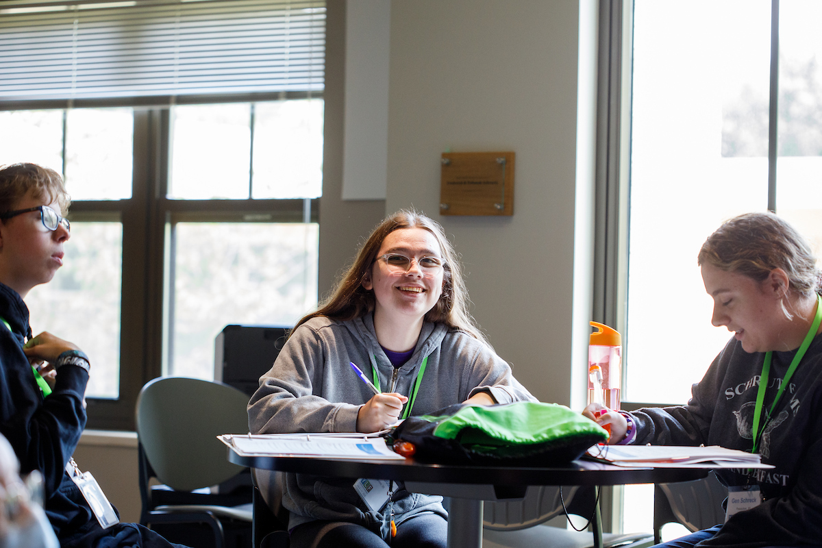 Organized small group discussions range from talks about living independently to developing personal leadership. Sara Park, a recent doctoral graduate from the Department of Rehabilitation Psychology and Special Education, facilitated multiple sessions, including one on career development after high school.