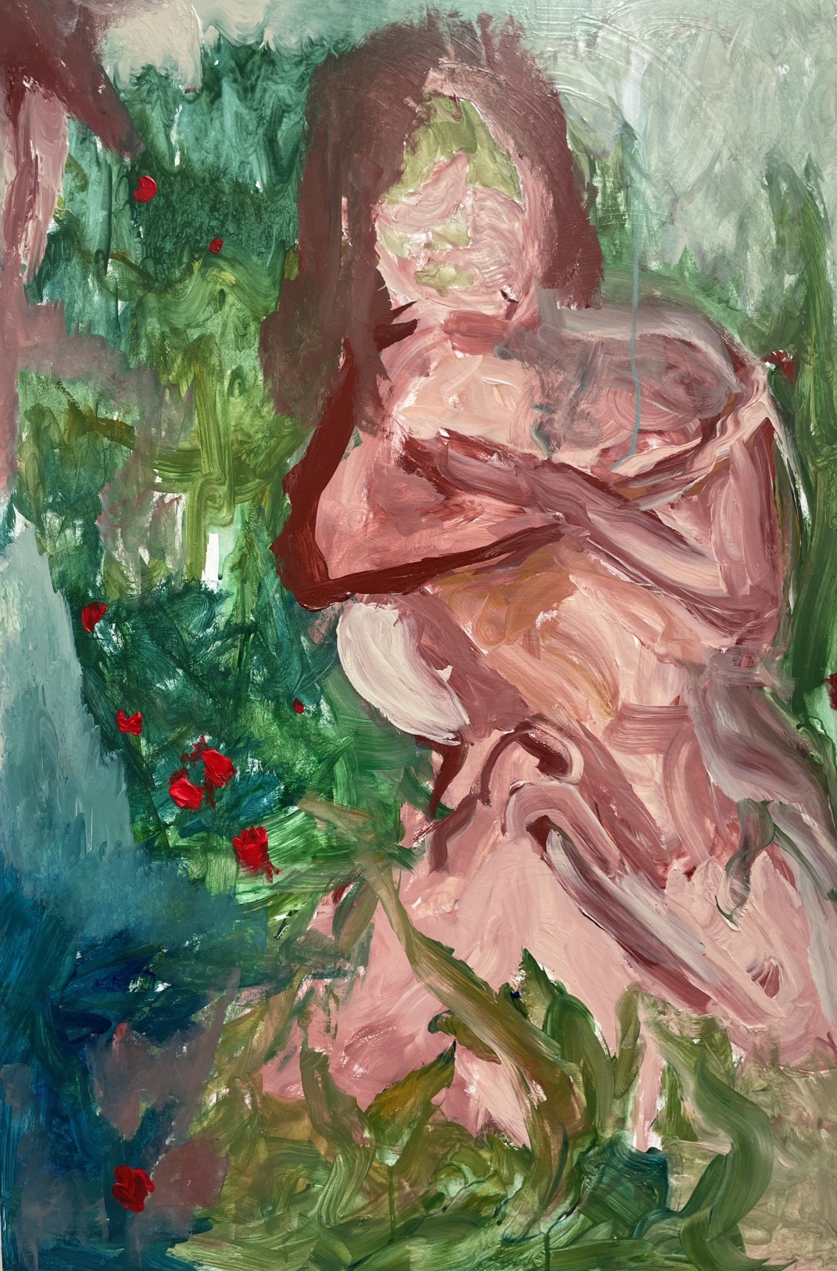 These two paintings are from a new collection on display in my studio show. I’ve been thinking through expressive painting as a means for exploring how the body in landscape can find new language for the intimacy of the interior.