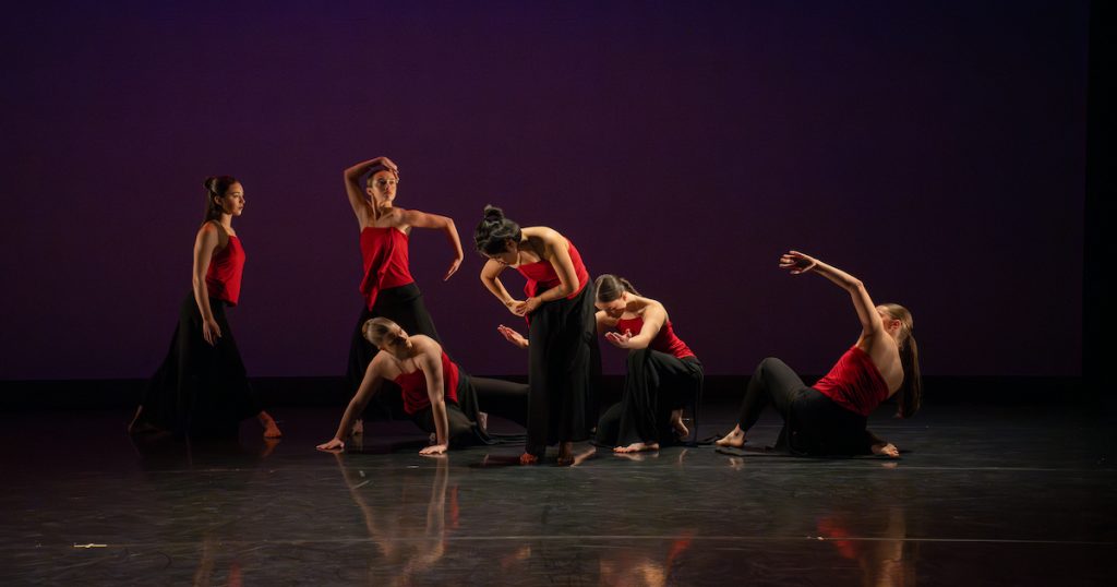 Created in collaboration with the dancers and set to music by Byron Au Yong, the piece explores “the range of yin, or feminine energy,” according to a Nov. 2024 review in The Capital Times. Performed by Kylie Buedel, Reagan Coussens, Harper Deeken, Sarina Simonelli, Erin Steers, and Pa Ying Thao, the six dancers “move with relentless rigor through exciting shifts between fluidity and percussiveness.”