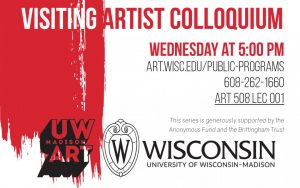 The Visiting Artist Colloquium, hosted by the School of Education’s Art Department, is held on Wednesdays from 5 – 6:15 p.m. during the academic year, and is free and open to the public. The lectures are available online via Blackboard.